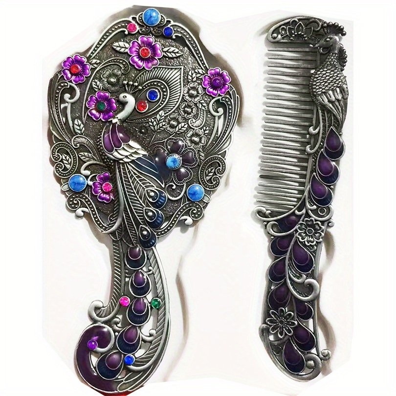 Home > Vintage Handheld Mirror & Antique Comb Set - Perfect Princess Gift for Women & Girls - Portable Makeup Mirror with Decorative Beads (Random Color)