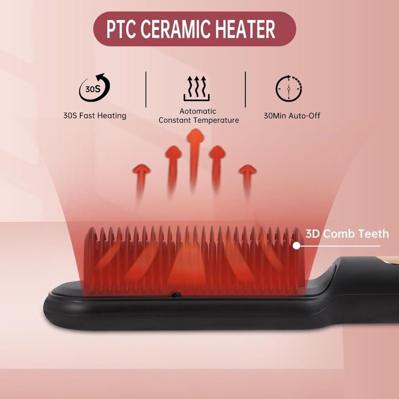 3.Hair brush has a PTC ceramic heating plate and 25 3D comb teeth.